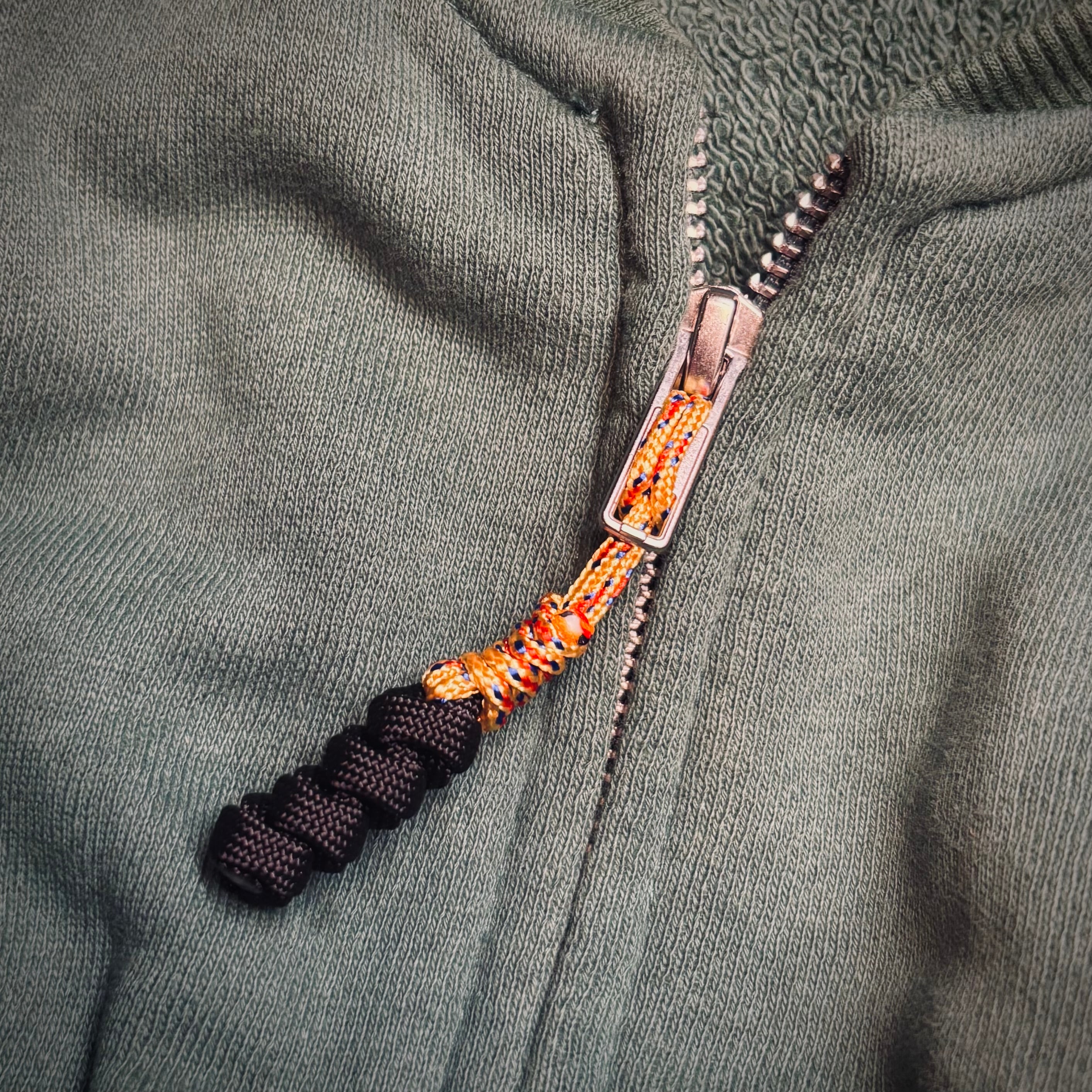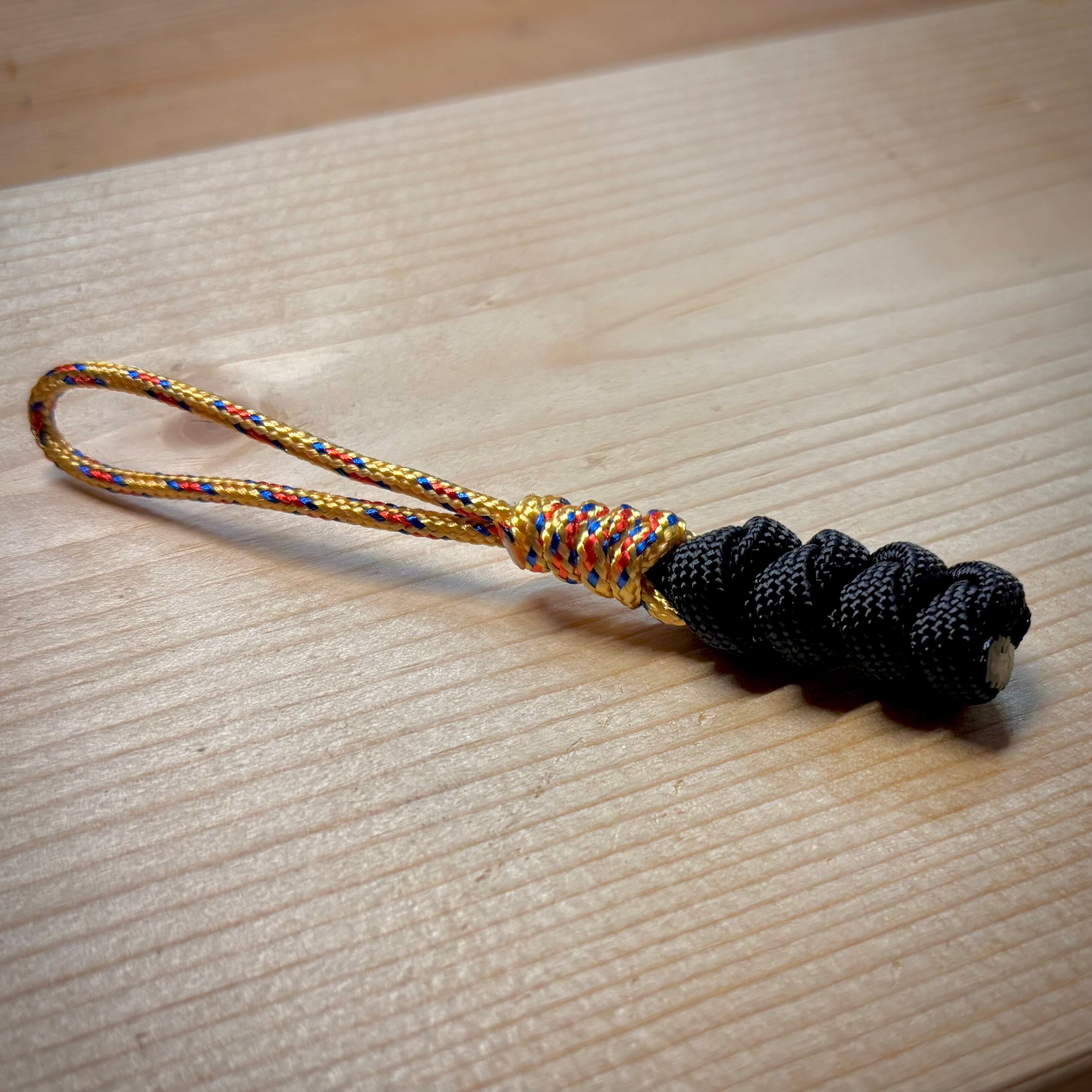 パラコード2mm,4mmのコンビネーションのジッパータブです。編みはスネークノットです。